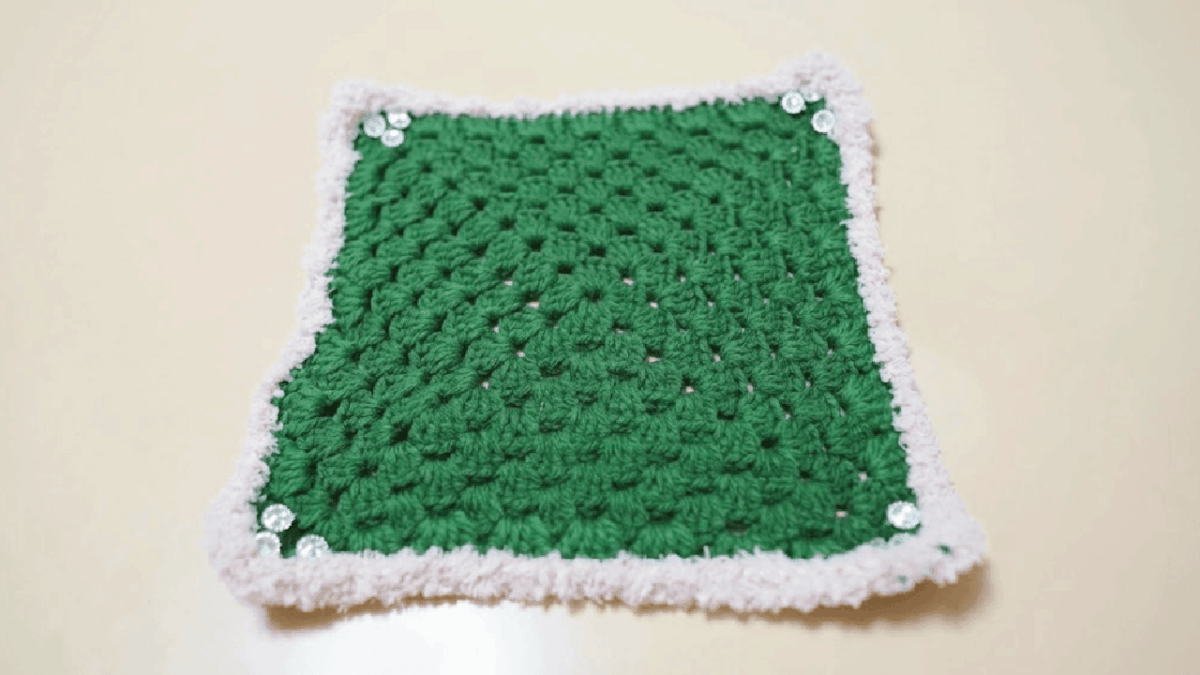 松原照子本人の手編みの編み物。敷物です。